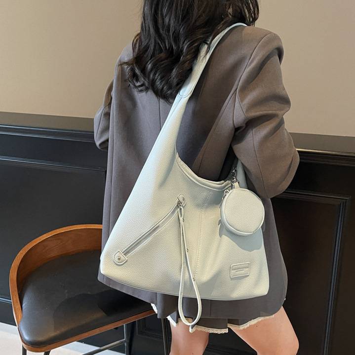 トレンド感溢れる2WAY仕様のショルダーバッグが登場。しなやかで柔らかいPUレザー素材が高見えし、オン・オフ問わず幅広いシーンで活躍します。サイドにはスタイリッシュなジッパー、取り外し可能な丸型ミニポーチ付きで機能性も抜群です。通勤や通学にもぴったりなサイズ感で、シンプルながらこなれ感のある印象に仕上がります。
