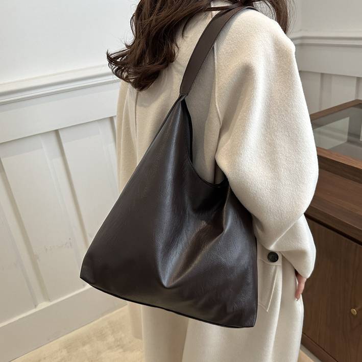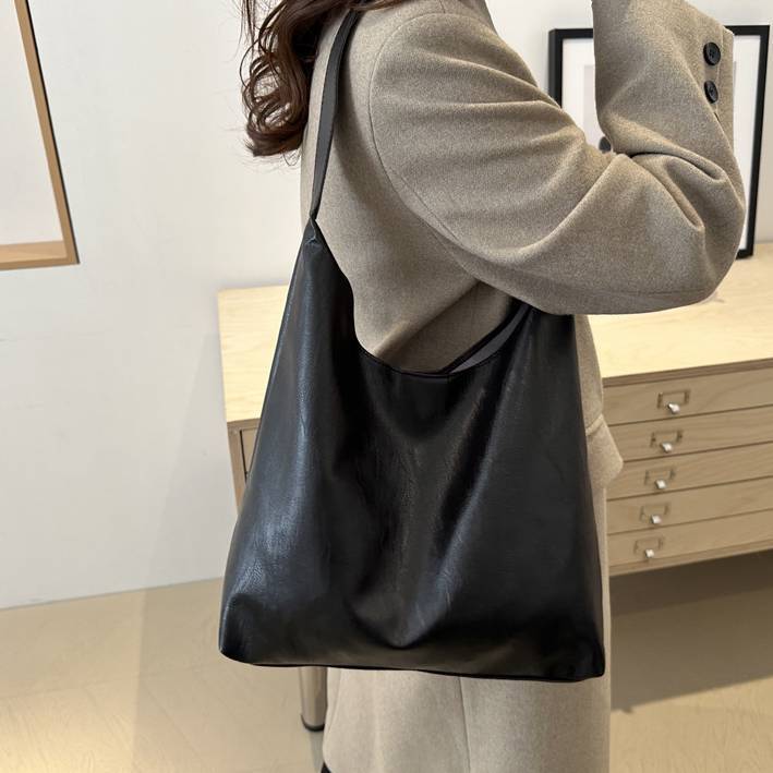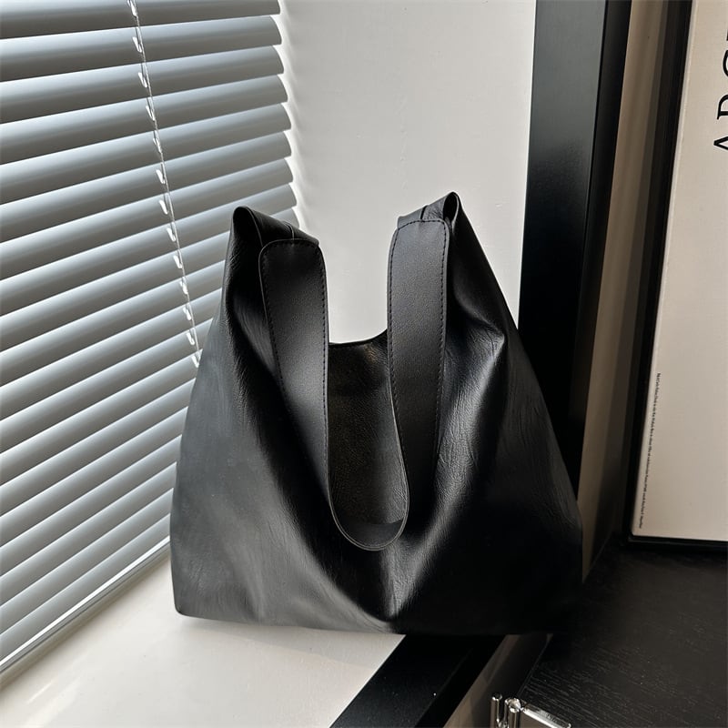 日常使いから通勤・通学まで幅広く対応できる大容量のショルダーバッグ。柔らかく上質なPUレザー素材で、肩にやさしくフィットし長時間の使用でも疲れにくい設計。無駄のないシンプルなデザインが、どんなスタイリングにも自然に溶け込みます。