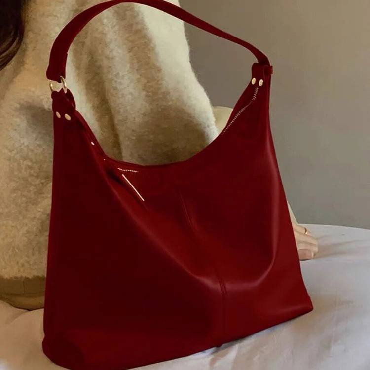 コーデに馴染みやすいワインレッドカラーのワンショルダーバッグは、洗練された大人っぽさと女性らしい柔らかさを演出してくれる逸品。程よい光沢感のあるレザー調素材とゴールドの金具が、上品な印象を与えながら普段使いにもぴったりな実用性を備えています。