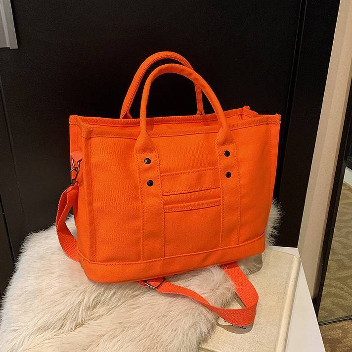 キャンバス トートバッグ ショルダーバッグ ミニバッグ レディース ワンタイプ ブラック グレー ブラウン オレンジ ホワイト シンプルデザイン 大人カジュアル 韓国風バッグ 斜めがけ対応 通勤通学 お出かけバッグ 秋冬 春夏 コーデ おしゃれ 人気 5色展開 K-B0198