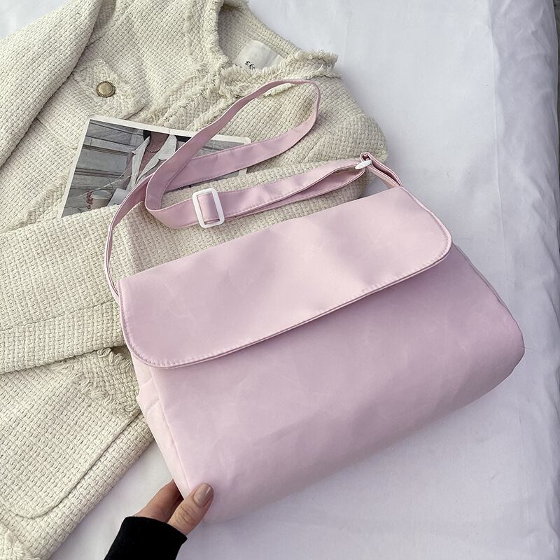 ショルダーバッグ メッセンジャーバッグ 韓国バッグ レディース 斜めがけ 軽量 シンプル 大容量 可愛い ブラック ライトブルー ライトイエロー ベージュ オレンジ レッド ピンク K-B0208
