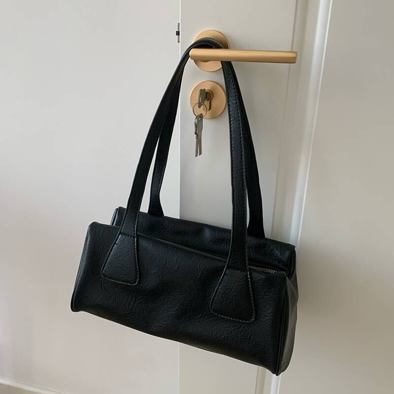 上品な光沢感とやわらかな質感が魅力のフェイクレザーショルダーバッグ。クラシックなスクエアシルエットと長めのハンドルデザインで、肩掛けにも手持ちにも対応し、洗練された印象を演出します。日常使いにぴったりのサイズ感で、財布やスマホ、コスメなどの必需品がすっきり収納可能。