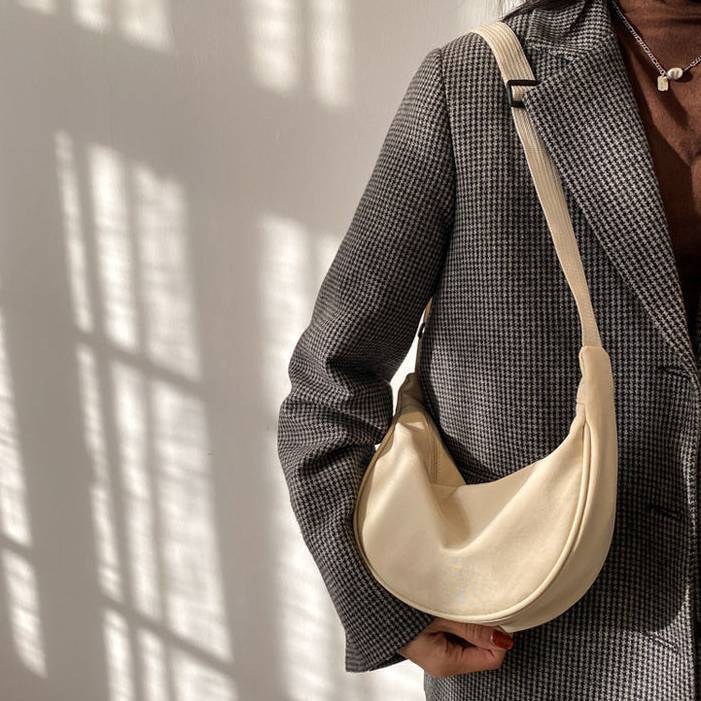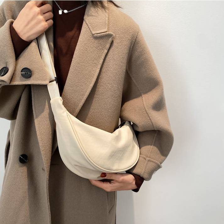 流行に敏感な女性たちの間で人気急上昇中のハーフムーン型ショルダーバッグ。絶妙なカーブデザインとコンパクトなサイズ感が、日常使いからちょっとしたお出かけまで幅広く活躍します。軽量かつ丈夫な素材で、肩への負担も軽減し、機能性とファッション性を両立した優秀アイテムです。