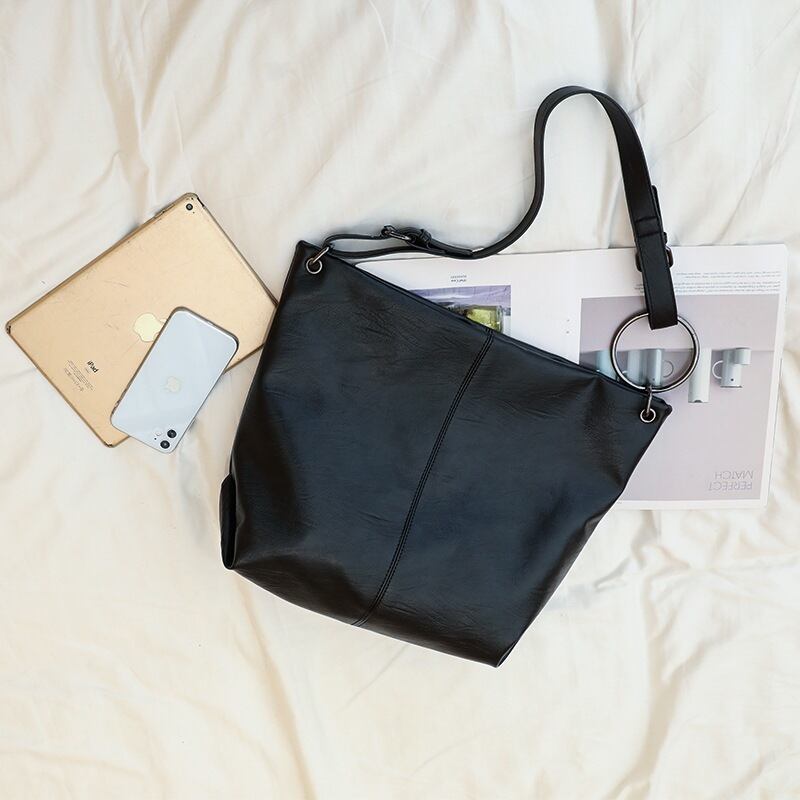 レザートートバッグ ワンショルダーバッグ ブラックバッグ レディースバッグ 大容量 シンプル 韓国風 きれいめ 通勤バッグ 肩掛け 軽量 オフィスカジュアル デイリーコーデ ブラック K-B0229