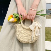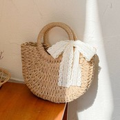 ハンドバッグとしてもショルダーバッグとしても使える2WAY仕様で、シーンやコーデに合わせて持ち方を変えられます。ピクニックやカフェ巡り、リゾート旅行など春夏のレジャーシーンにぴったり。レースリボンがアクセントになり、ガーリー派さんにもおすすめのアイテムです。