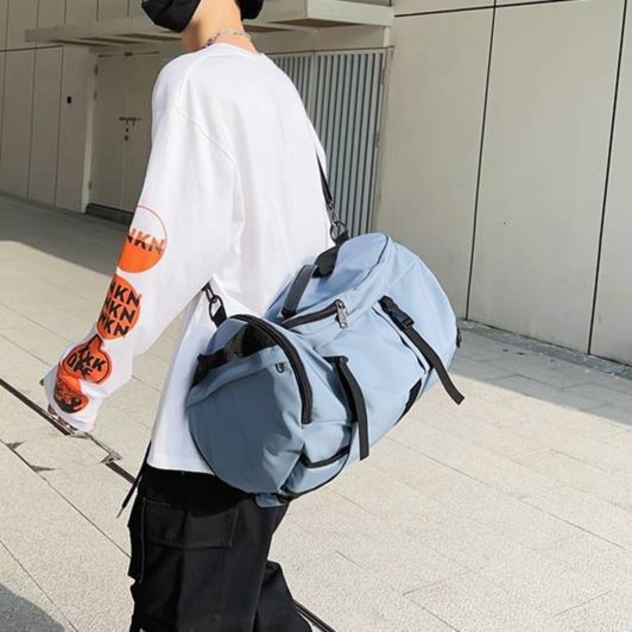 ブラック・ブルー・ホワイトの3カラー展開で、ユニセックスで使いやすいカラー展開。ストリート・韓国ファッション・スポーティーコーデまで、幅広く活用できる万能バッグです。軽量素材なので長時間の使用も疲れにくいのが嬉しいポイントです。