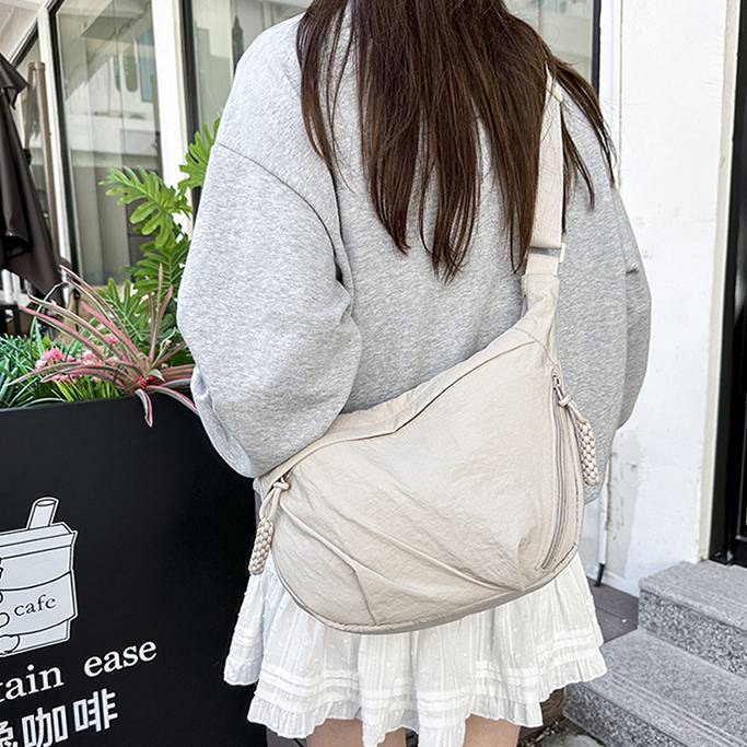 クロスボディ ワンショルダー 大容量ショルダーバッグ レディース 軽量 無地 シンプル ナイロン風 カジュアル 旅行 通学 韓国ファッション 春夏 秋冬 オールシーズン K-B0235