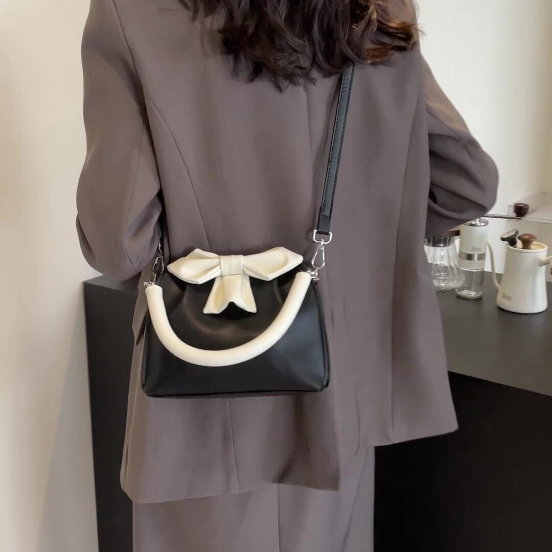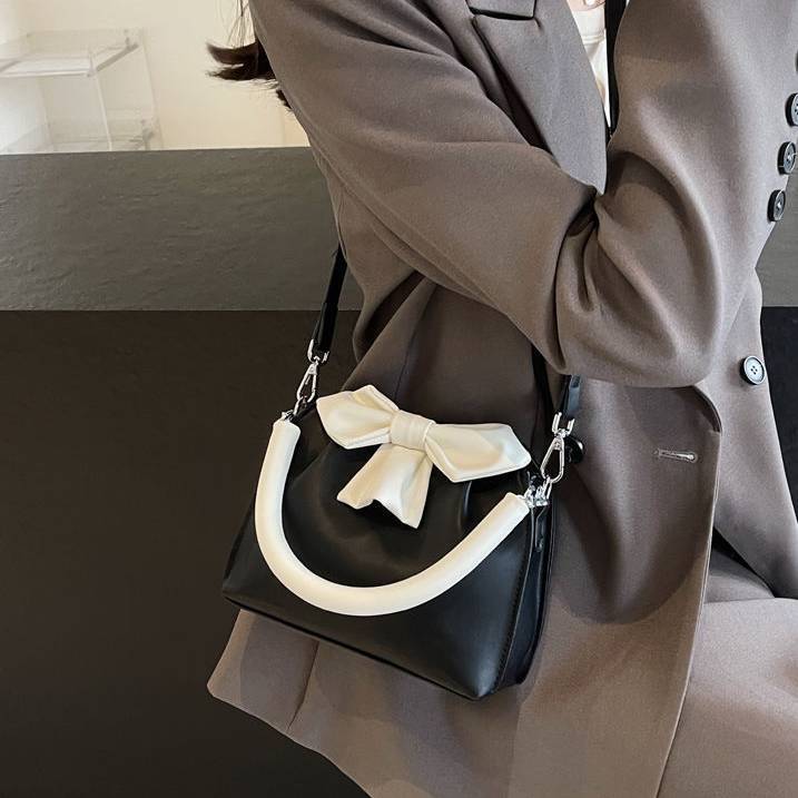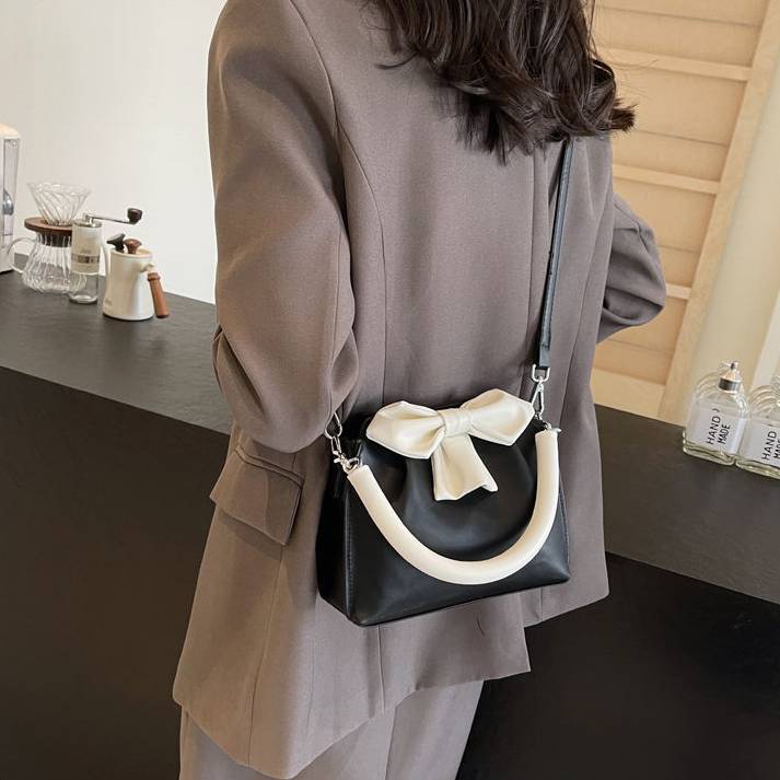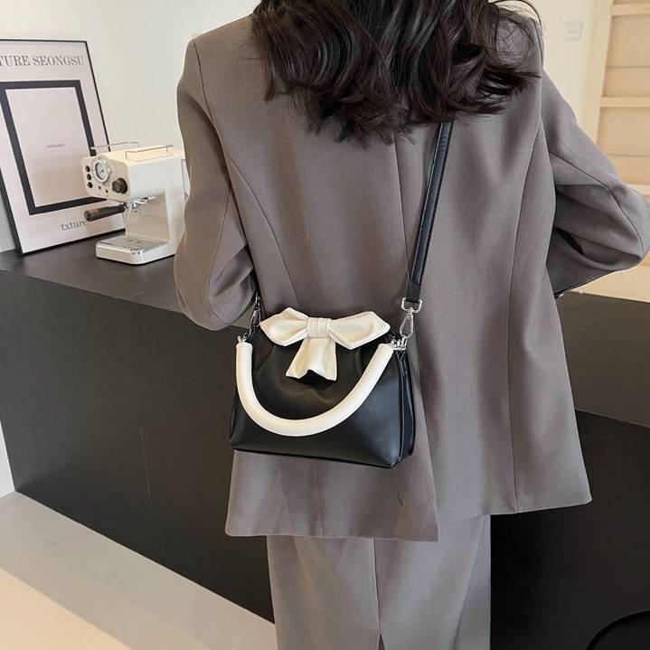 リボンモチーフ ワンハンドルショルダーバッグ レディース ミニバッグ 斜めがけバッグ PUレザー フォーマル カジュアル フェミニン モード ブラック ワンカラー 320g 軽量設計 K-B0244