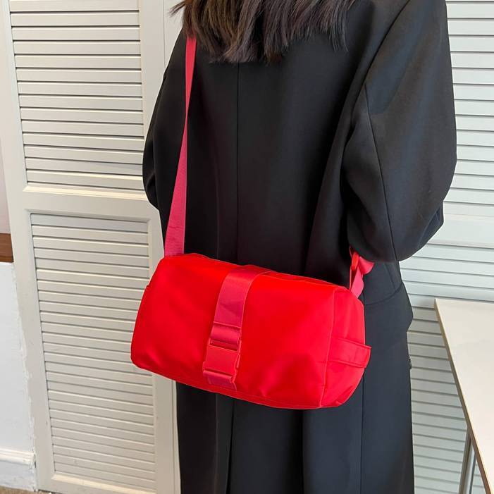 スポーティーバックル ショルダーバッグ 軽量ミニボストン カジュアル斜めがけ 肩掛けバッグ 韓国風バッグ 男女兼用 ストリート 軽量 春夏 秋冬 トレンド 大容量 4色展開 K-B0246