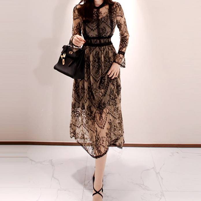 ワンピース Aラインワンピース レディース 春夏 秋冬 春 夏 秋 冬 黒 ロングワンピース ロング レース 長袖 フレアワンピース ロングワンピ ワンピドレス フリル OL エレガント フォーマル ブラック 大きいサイズ きれいめ ドレスワンピース お呼ばれ 韓国 ファッション オフィスカジュアル 韓国風 キャバドレス ナイトドレス ナイトワンピ カジュアル 10代 20代 30代 40代 C-OSS0124