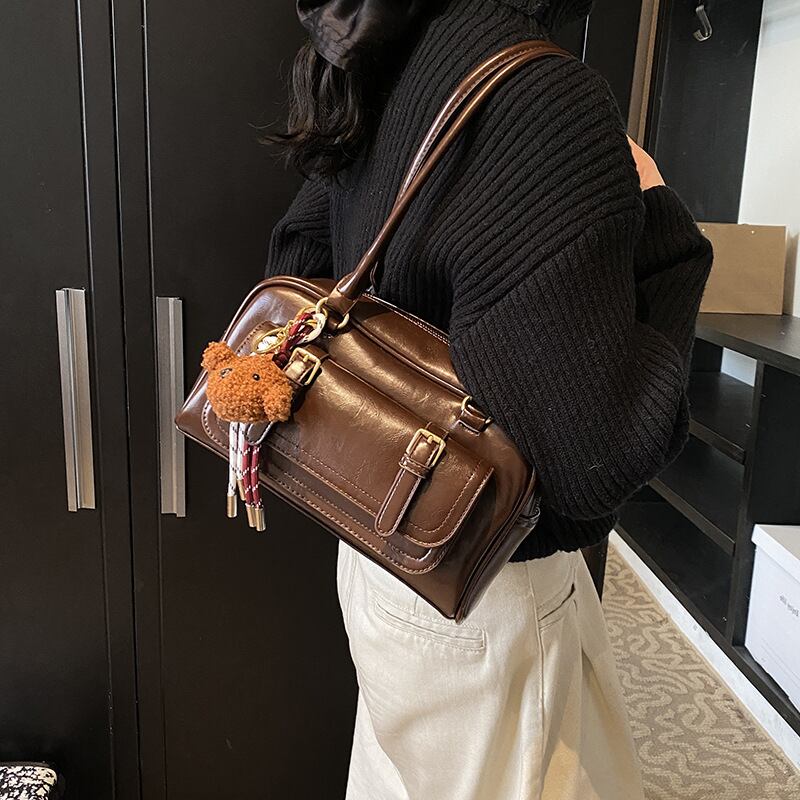 レザーハンドバッグ ショルダーバッグ レディース 大容量 通勤 通学 旅行 韓国風 おしゃれ かわいい シンプル ブラック ダークブラウン ブラウン 秋冬 春夏 10代 20代 30代 40代 K-B0251