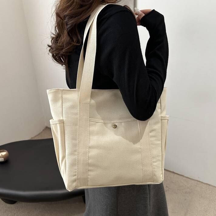 毎日のお出かけや通勤・通学にぴったりの大容量キャンバストートバッグ。シンプルなデザインだからどんなコーデにも合わせやすく、季節を問わず使える万能アイテムです。肩掛け・手持ちの両方に対応できる便利さも魅力です。