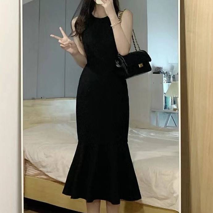 マーメイドライン ワンピース タイトワンピース ノースリーブ ミディ丈 レディース きれいめ 上品 大人可愛い シンプル ブラック 韓国風 オフィス 通勤 結婚式 二次会 デート お呼ばれ ドレス フォーマル カジュアル 春 夏 秋 冬 黒 おしゃれ 人気 美シルエット 20代 30代 40代 女性向け トレンド ファッション C-OSS0130