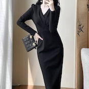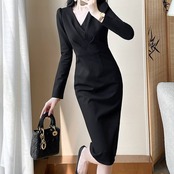 ワンピース レディース ロングワンピース タイト 長袖 Vネック 上品 エレガント 大人可愛い きれいめ 韓国風 ブラック ドレス 通勤 仕事 二次会 結婚式 フォーマル セレモニー 春 秋 冬 シンプル 高見え 20代 30代 40代 人気 スリムフィット 美シルエット C-OSS0164