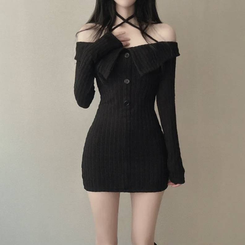 商品名:オフショルダー ニットワンピース タイトミニドレス
