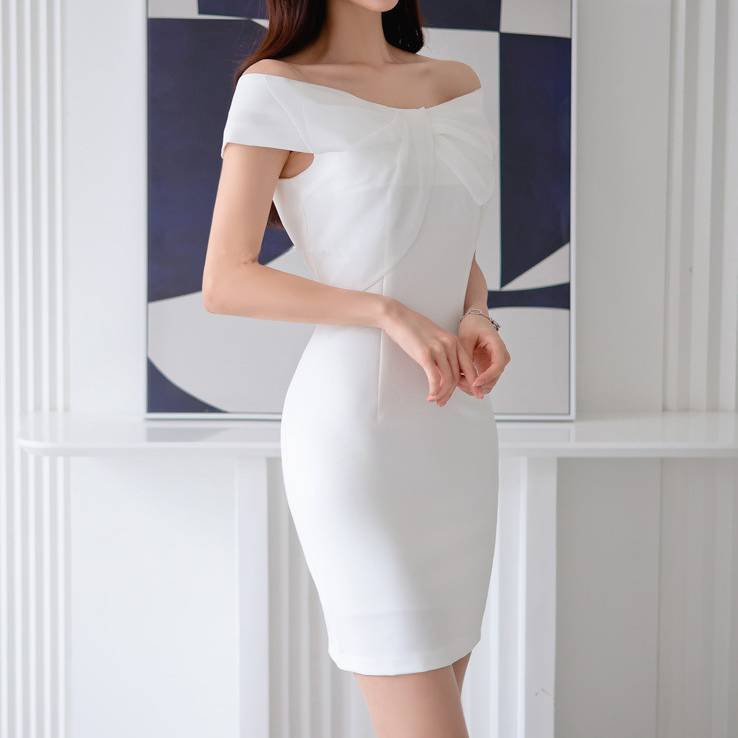 レディース ワンピース オフショルダー タイト ミニドレス ホワイト フォーマル 結婚式 二次会 パーティー お呼ばれ 上品 清楚 韓国ファッション セクシー エレガント きれいめ 大人女子 体型カバー 春 夏 秋 冬 通年 美ライン 着痩せ効果 シンプルデザイン S M L XL C-OSS0177