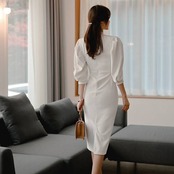 商品名:ホワイト パフスリーブ ミディ丈 タイトワンピース
