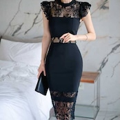 ブラック ワンピース レディース ミディ丈ワンピース レースワンピース タイトドレス ノースリーブ シースルーレース エレガント セクシー 大人きれい 上品 美ライン 透け感 韓国ファッション 結婚式 二次会 パーティー デート ナイトフォーマル 高級感 春 夏 秋 冬 C-OSS0212