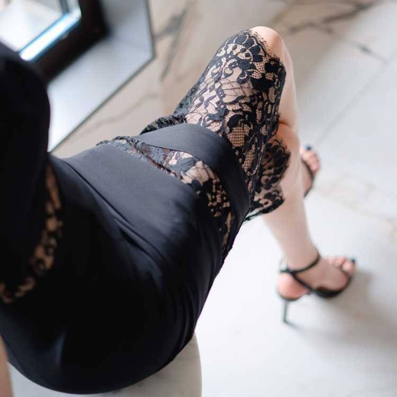 繊細なレースが上品に透ける、大人の女性の魅力を引き立てるタイトミディドレス。