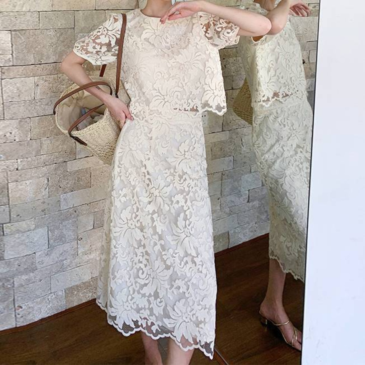 ホワイト ワンピース レディース レースワンピース ミディ丈 セットアップ風 半袖 総レース 花柄 シースルー エレガント 上品 清楚 体型カバー 大人可愛い ナチュラル 韓国ファッション お呼ばれ デート 通勤 パーティー 春 夏 秋 冬 人気 トレンド C-OSS0213