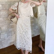 上品な総レースデザインが魅力のミディ丈ワンピース。