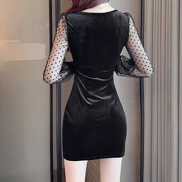 商品名:ドットシアースリーブ ベルベットタイトミニドレス