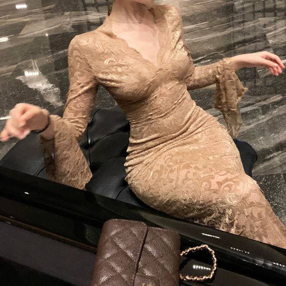 レースの美しい透け感と身体のラインを引き立てるスリムシルエットが魅力のロングドレスです。上品でエレガントな雰囲気をまとい、特別なシーンでも存在感を放つデザインに仕上げました。高級感のあるレース生地が光に映え、女性らしい美スタイルを演出します。
