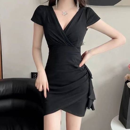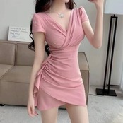 ミニワンピース タイトワンピース レディース セクシー 深Vネック ドレープ デザイン ショート丈 ワンピ タイト 大人可愛い 韓国風 パーティー お呼ばれ 食事会 デート きれいめ ブラック ピンク 20代 30代 スリム シルエット 美脚 上品 ワンタイプ C-OSS0223