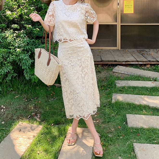 商品名:総レース セットアップ風 ミディ丈ワンピース