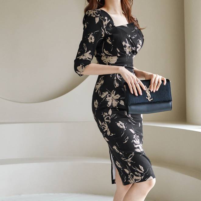 上品さと大人の色気を同時に引き立てるエレガントなフラワー柄タイトワンピースです。メリハリのあるラインを美しく見せる立体シルエットで、デート・お呼ばれ・女子会にもぴったり。華やかさの中に上品さを加え、着るだけで雰囲気のある女性を演出します。