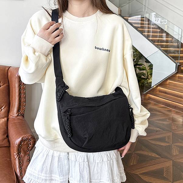 毎日のコーデにすっとなじむ、軽量でやわらかなナイロンクロスボディバッグ。シンプルな無地デザインと程よいボリューム感で、カジュアルからナチュラル、韓国ファッションまで幅広いスタイルにマッチします。身体に沿うようなフォルムで、長時間の外出でもストレスなく使えるのが魅力です。