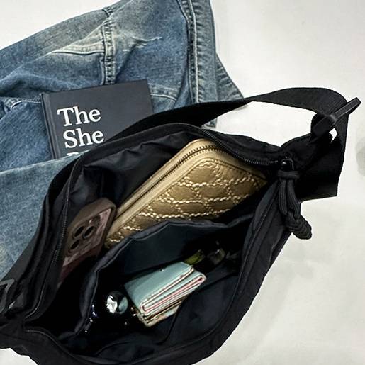 見た目はコンパクトながら、財布・スマホ・ポーチ・小物類などをしっかり収納できる実用的なサイズ感。ファスナー付きで中身が見えにくく、デイリー使いはもちろん、通勤・通学・旅行のサブバッグとしても活躍します。ショルダーストラップは調節可能で、体型やスタイルに合わせて快適に持つことができます。