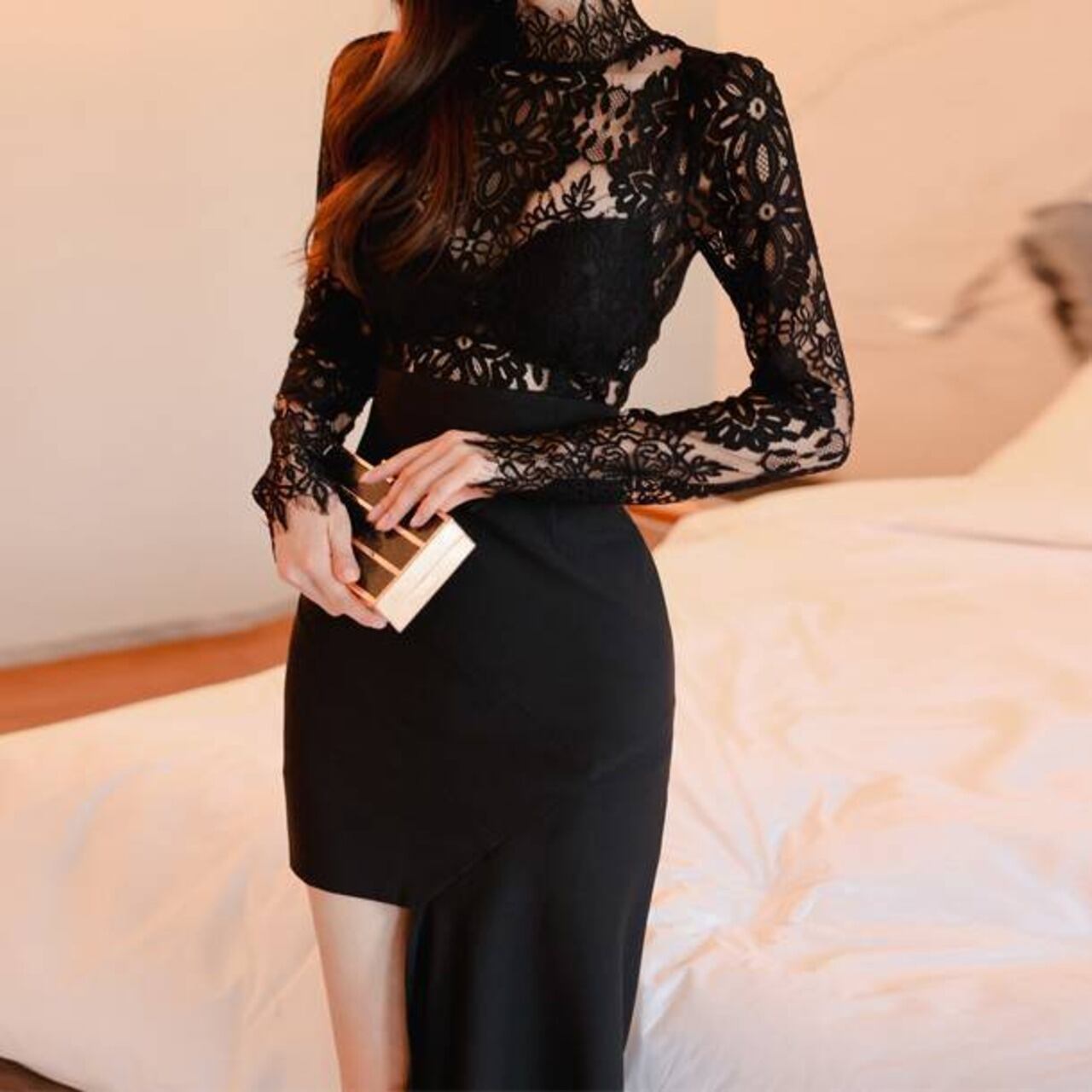 ・総レース×タイトシルエットの高級感デザイン