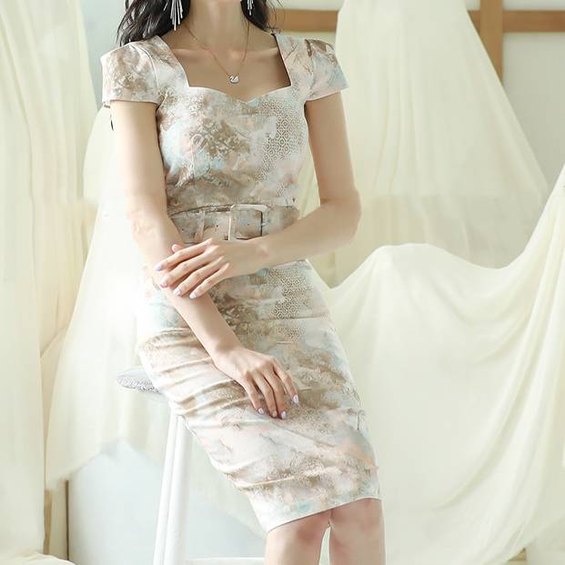女性らしいシルエットを引き立てる、エレガントなフラワー柄タイトワンピースです。身体のラインに沿う美しいカッティングと、ウエストベルトがスタイルアップを叶えてくれます。胸元はデコルテを綺麗に見せるカットデザインで、上品さと華やかさを同時に表現。デートやオフィス、特別なシーンにも活躍する万能な一枚です。