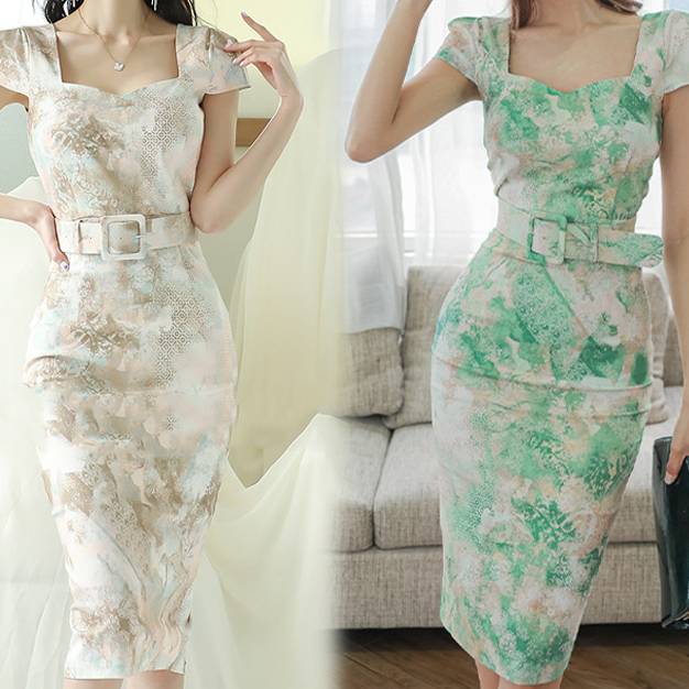 フラワー柄 ワンピース タイトワンピース 膝丈ワンピース レディース ドレス きれいめ 上品 エレガント ベルト付き お呼ばれ デート 二次会 パーティー フォーマル 春 夏 秋 冬 2色展開 C-OSS0251