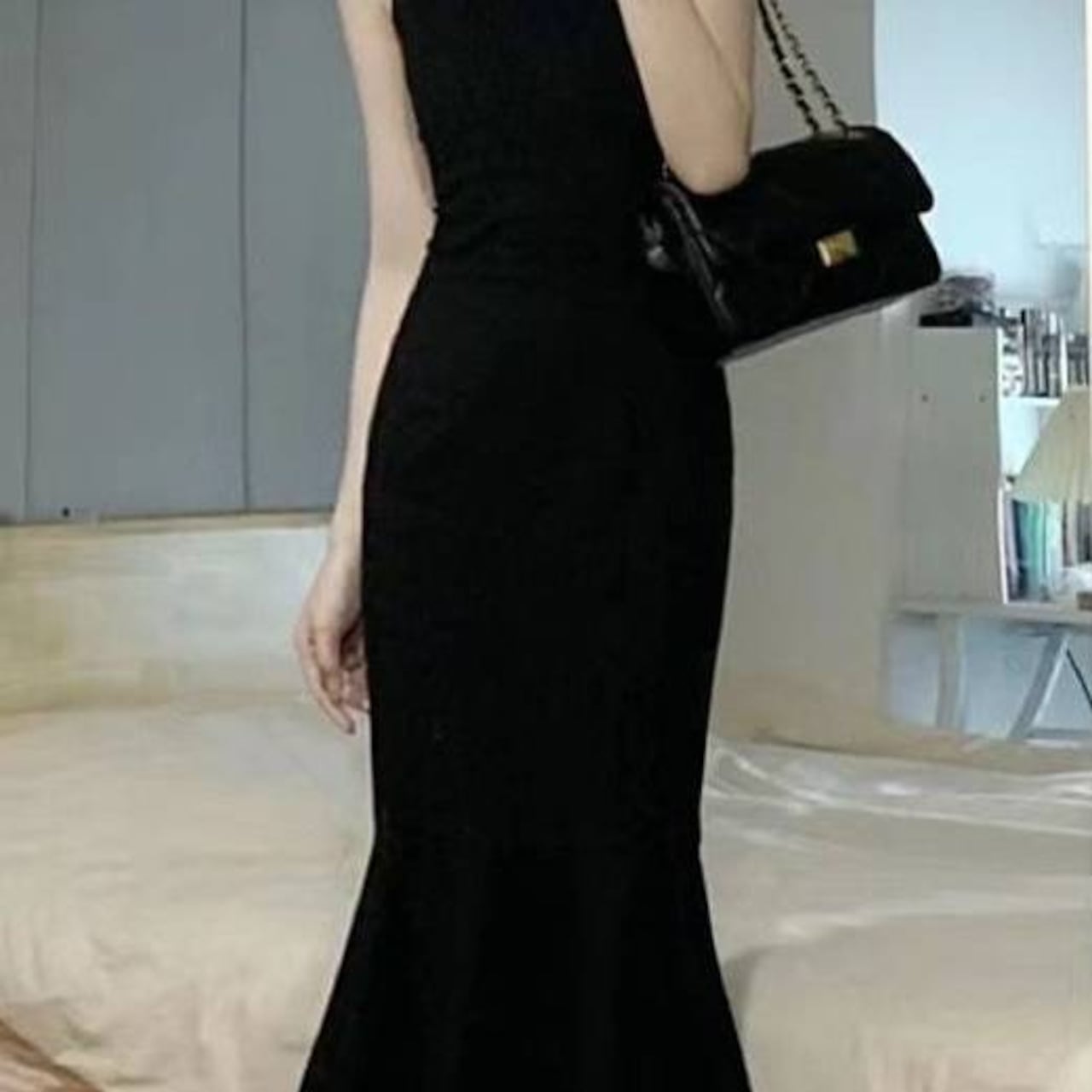 大人の女性らしさを引き立てる、上品で美シルエットのブラックワンピースです。身体のラインに美しく寄り添うタイト設計と、裾に向かってふんわり広がるマーメイドラインが華やかさを演出。シンプルでありながら存在感のあるデザインで、特別な日にも普段のデートにも活躍します。