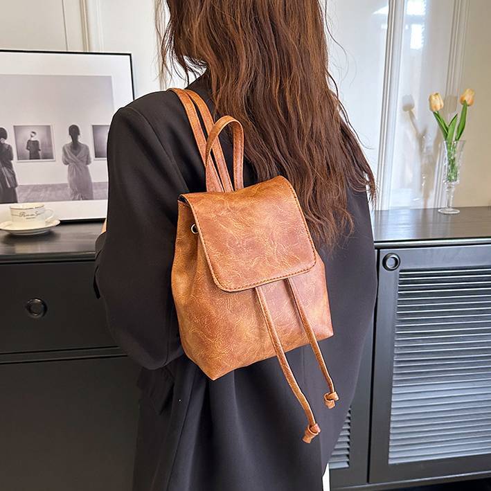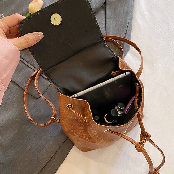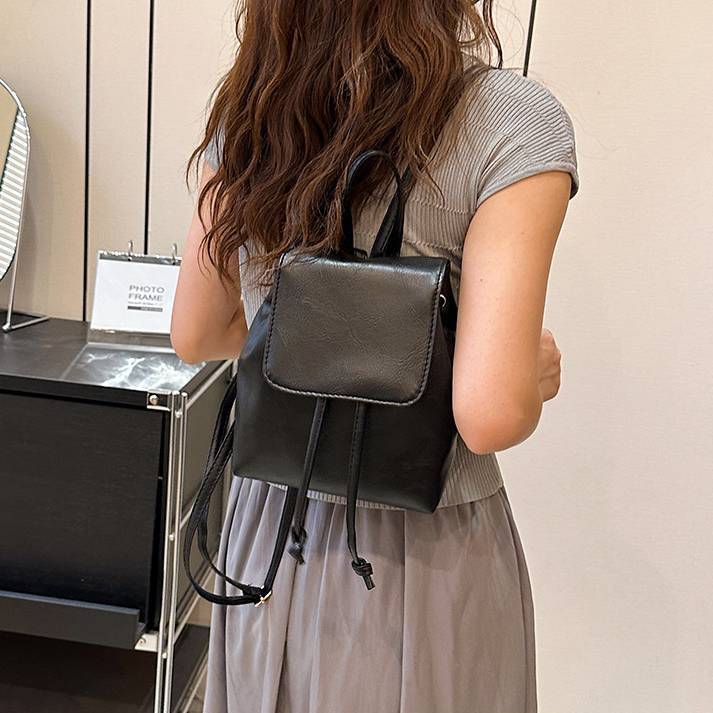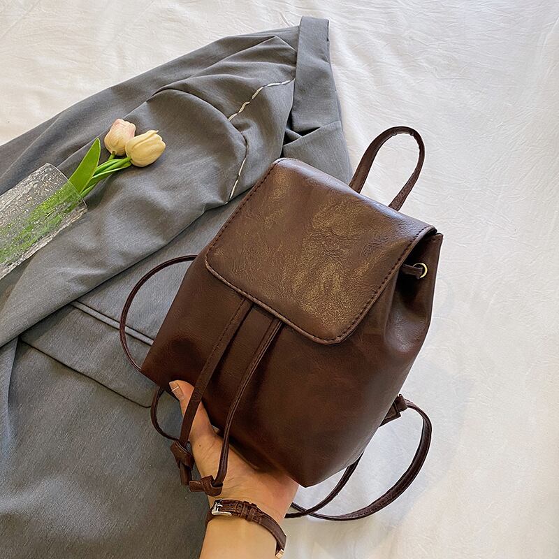 ミニリュック レディース バックパック 巾着リュック レザー調 小さめ コンパクト 軽量 カジュアル きれいめ 大人可愛い 通勤 通学 お出かけ 韓国ファッション 無地 シンプル ブラック ダークブラウン ブラウン ワンサイズ K-B0264