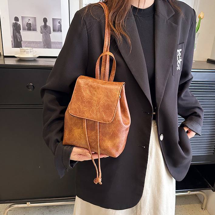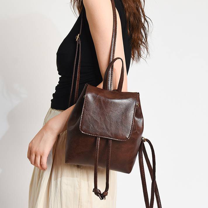 上品なレザー調素材を使用した、コンパクトサイズのミニバックパック。