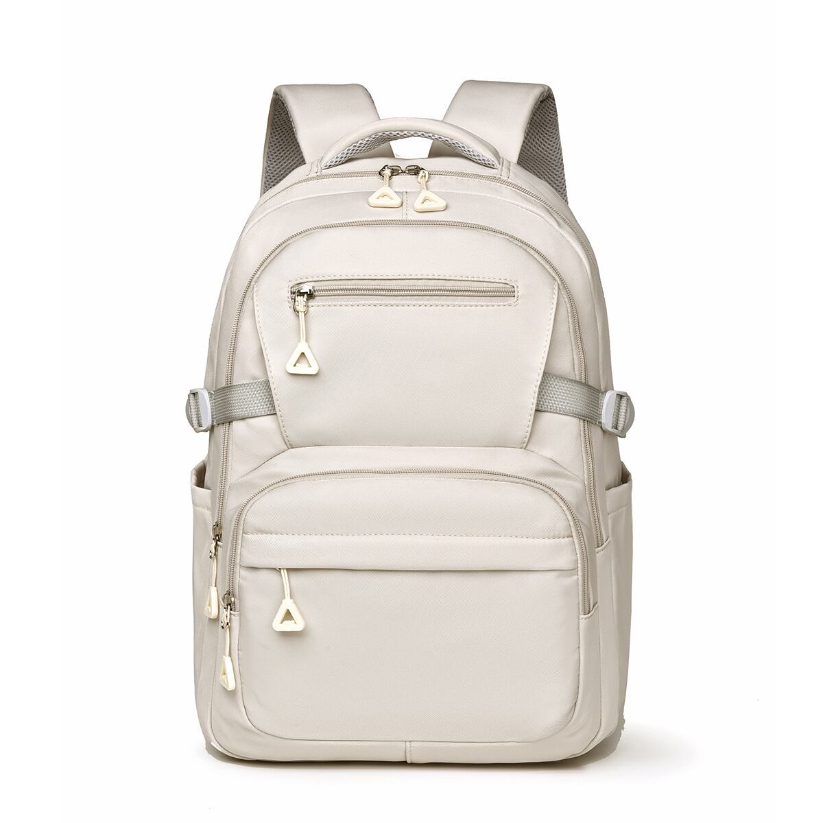 軽量素材を採用し、肩への負担を軽減するクッション入りショルダー仕様。長時間の使用でも疲れにくく、毎日の通勤・通学や旅行シーンでも快適にお使いいただけます。ブラック・グレー・ピンク・ベージュの4色展開で、性別やスタイルを問わず選びやすいカラーラインナップです。