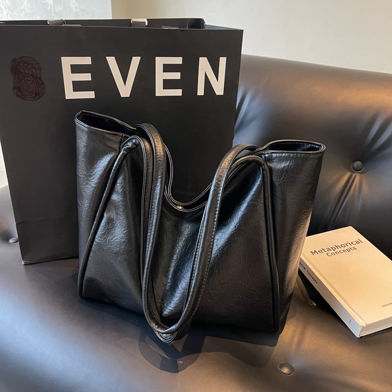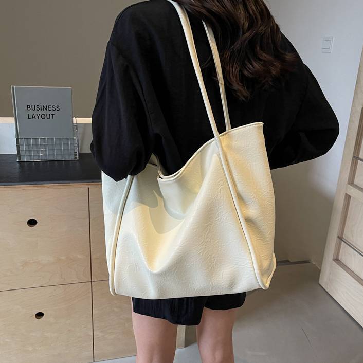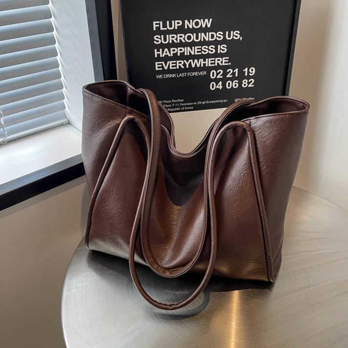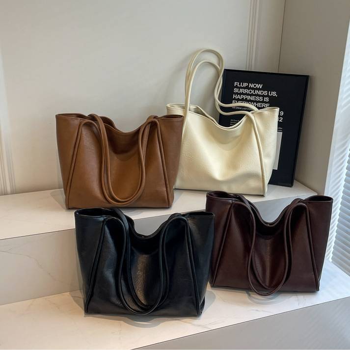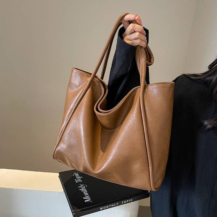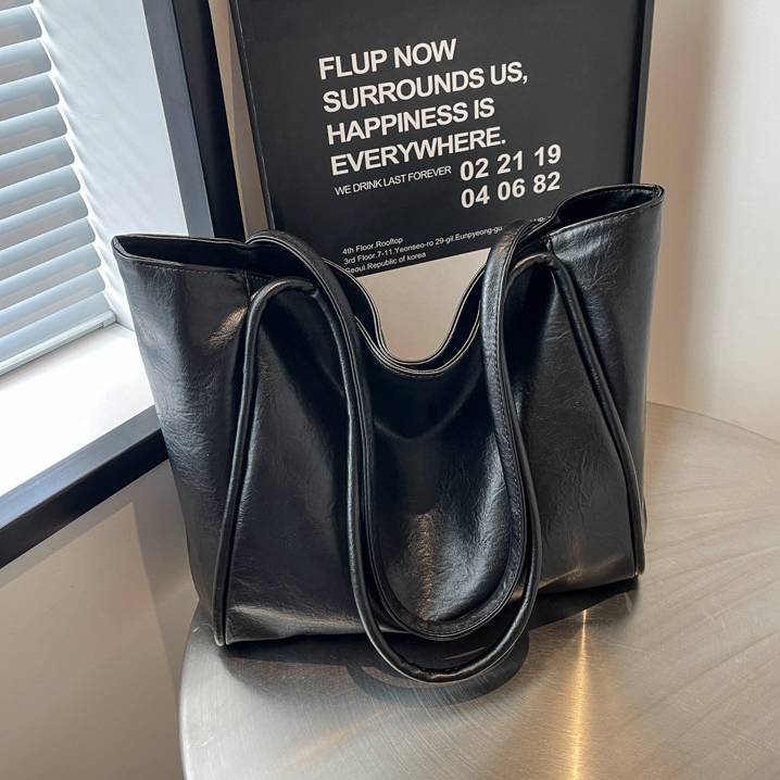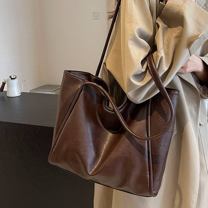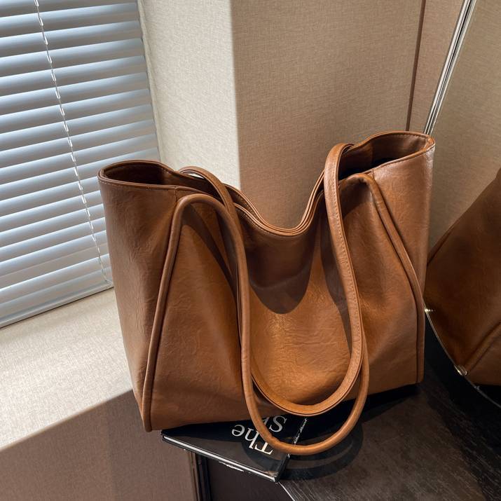 柔らかい質感のPUレザーを使用した、上品で洗練されたワンショルダートートバッグ。