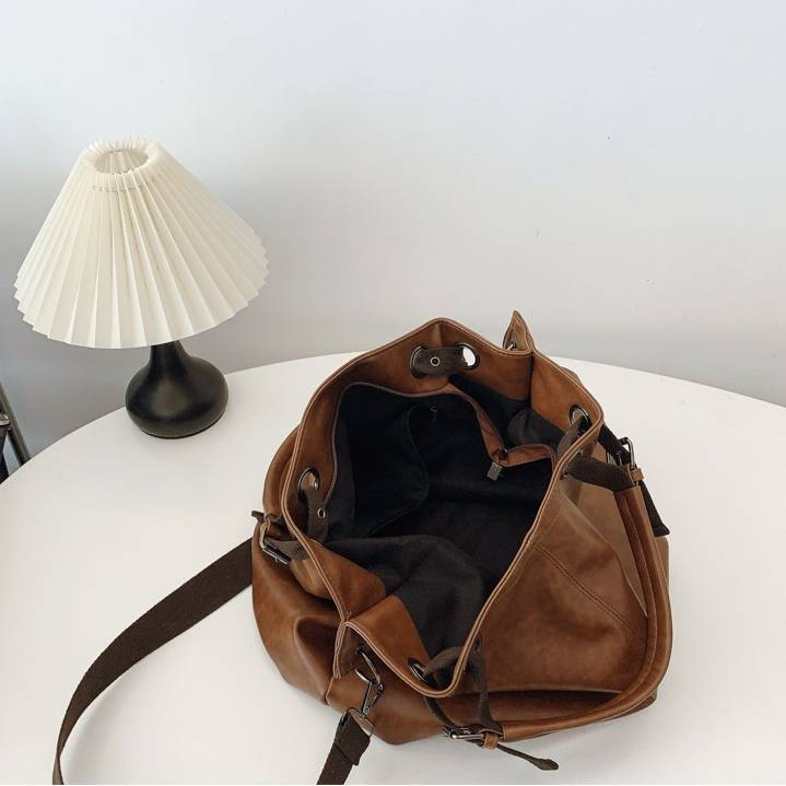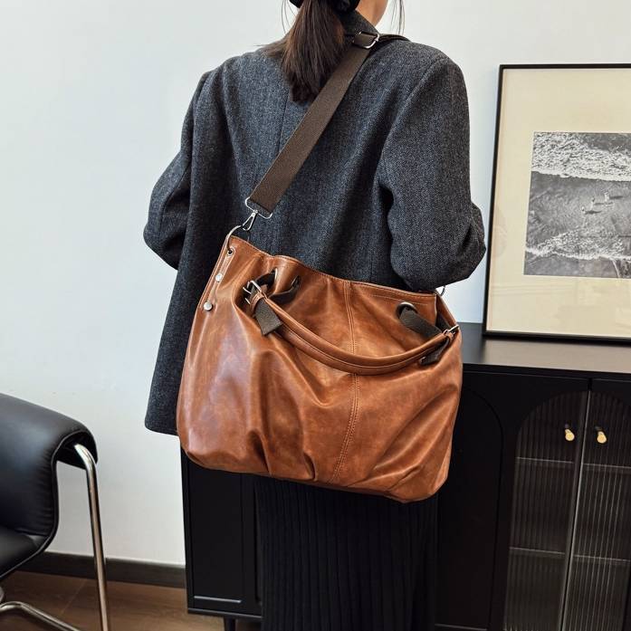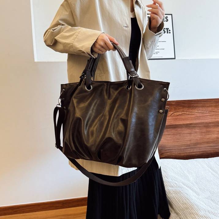 程よいヴィンテージ感のあるPUレザー素材が、高見えする落ち着いた印象を演出します。シンプルながら存在感のあるデザインで、通勤スタイルやきれいめカジュアルにぴったりの一品です。