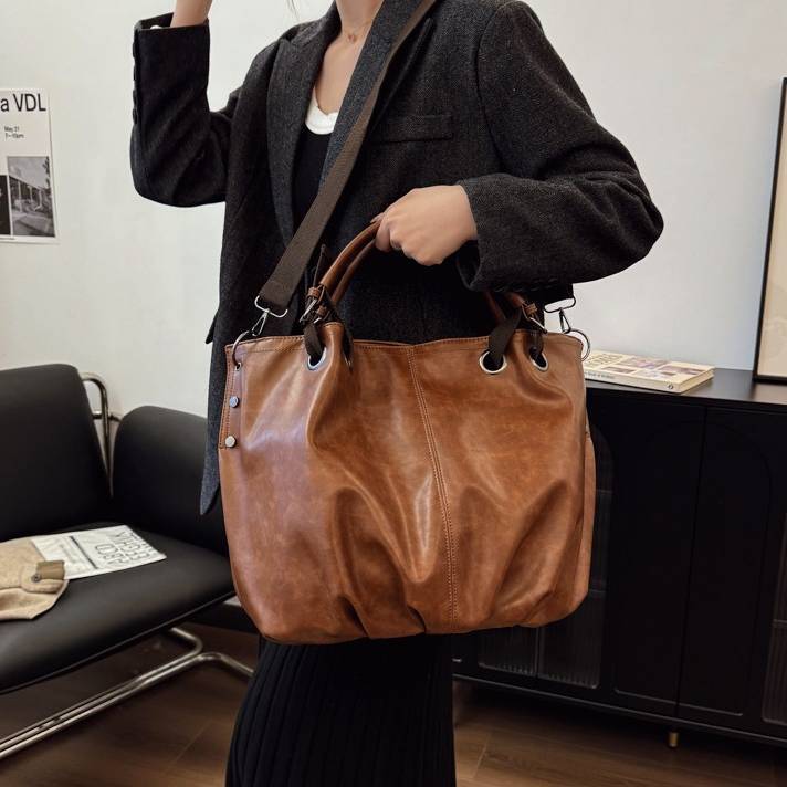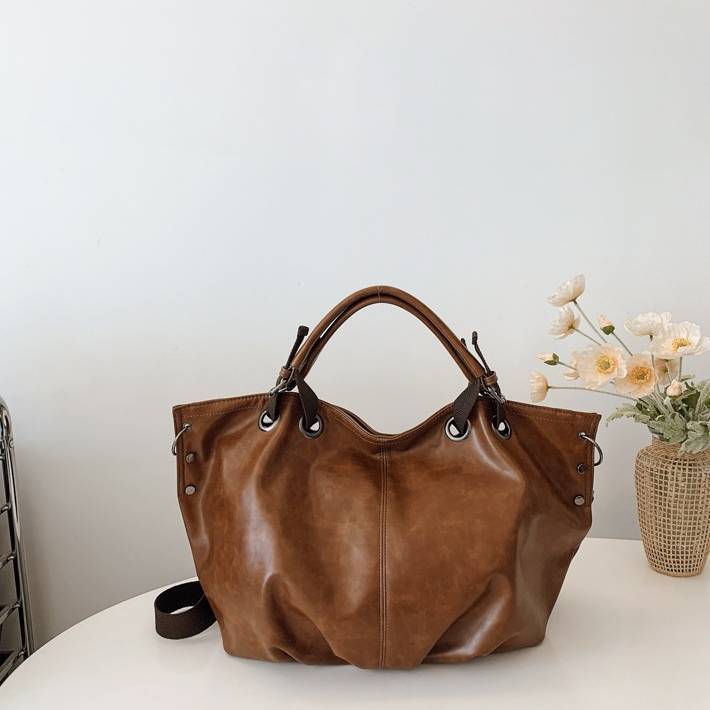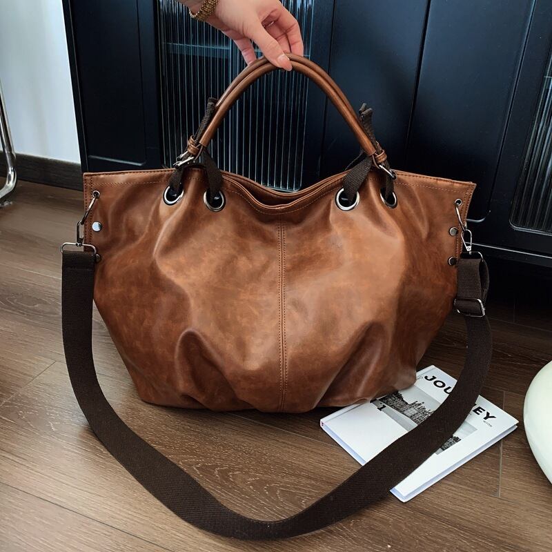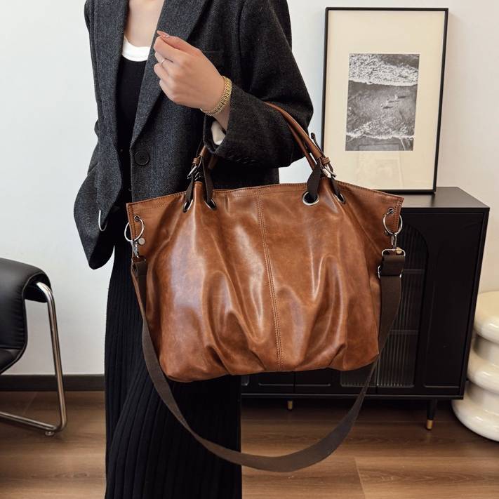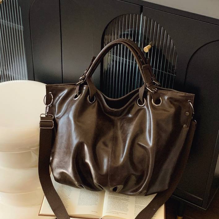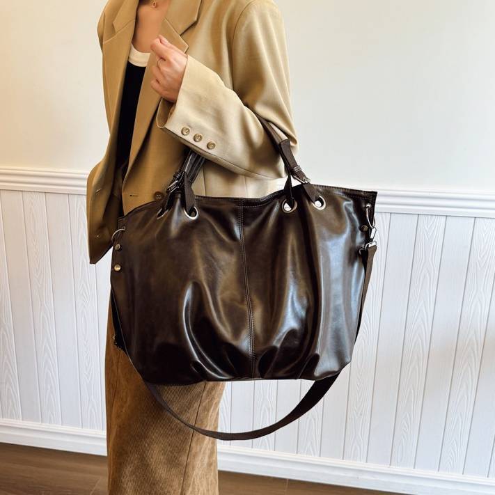 大容量トートバッグ レディース 2WAY ショルダーバッグ PUレザー A4対応 通勤バッグ 通学バッグ 斜めがけバッグ きれいめ カジュアル 大人バッグ ダークブラウン ブラウン ワンサイズ K-B0269