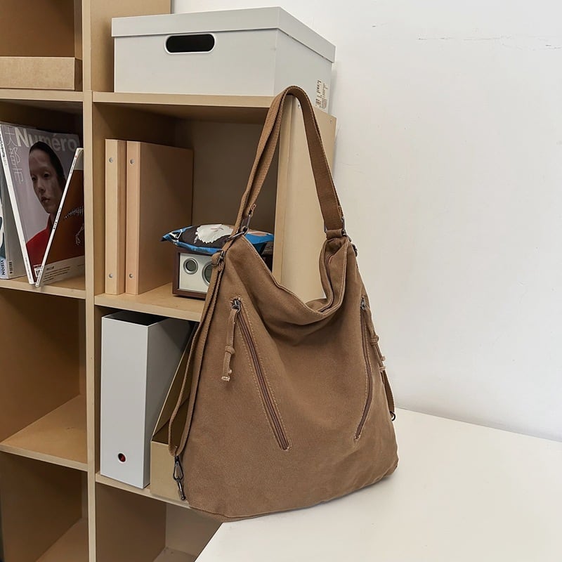 ラフに持てて、しっかり収納。デイリー使いにぴったりな2WAYカジュアルバッグ。柔らかいナイロン素材を使用し、軽量で扱いやすく、普段使いから通勤・通学まで幅広く活躍します。くたっとしたフォルムがこなれ感を演出し、シンプルコーデにも自然に馴染みます。ショルダーバッグとしても、リュックとしても使える便利な2WAY仕様。シーンやスタイルに合わせて持ち方を変えられるのが魅力です。外側にはファスナーポケット付きで、小物の出し入れもスムーズ。見た目以上の収納力で、A4サイズやタブレット、ポーチなどもしっかり入ります。