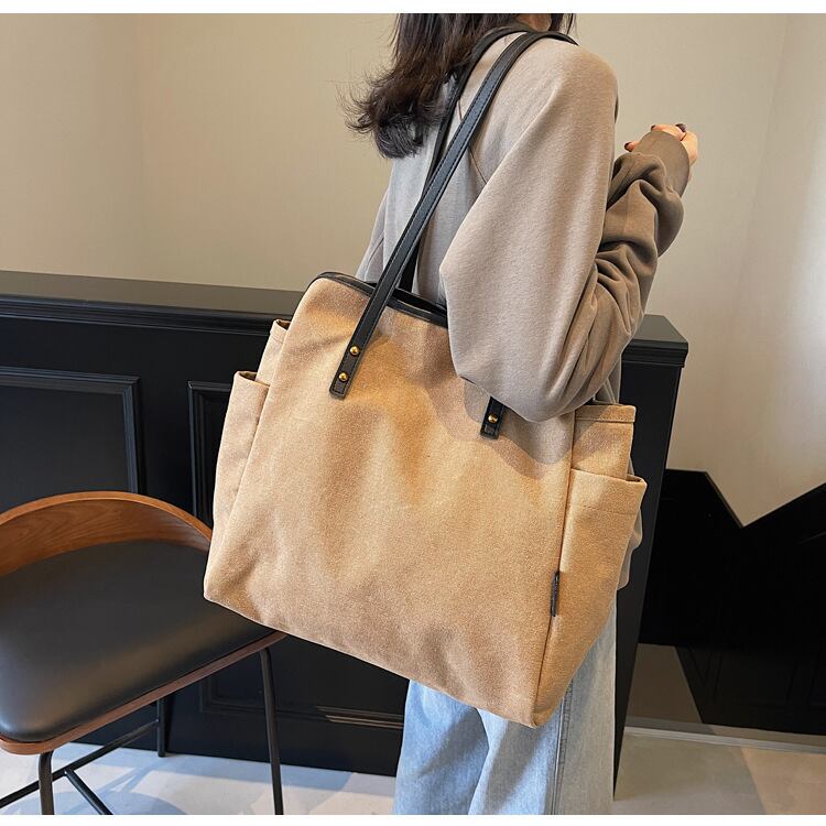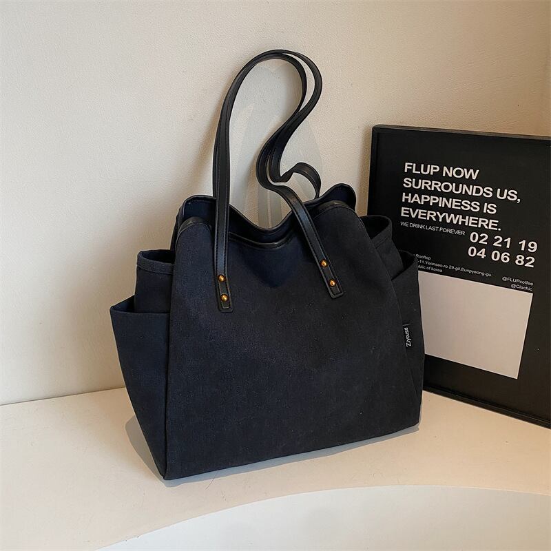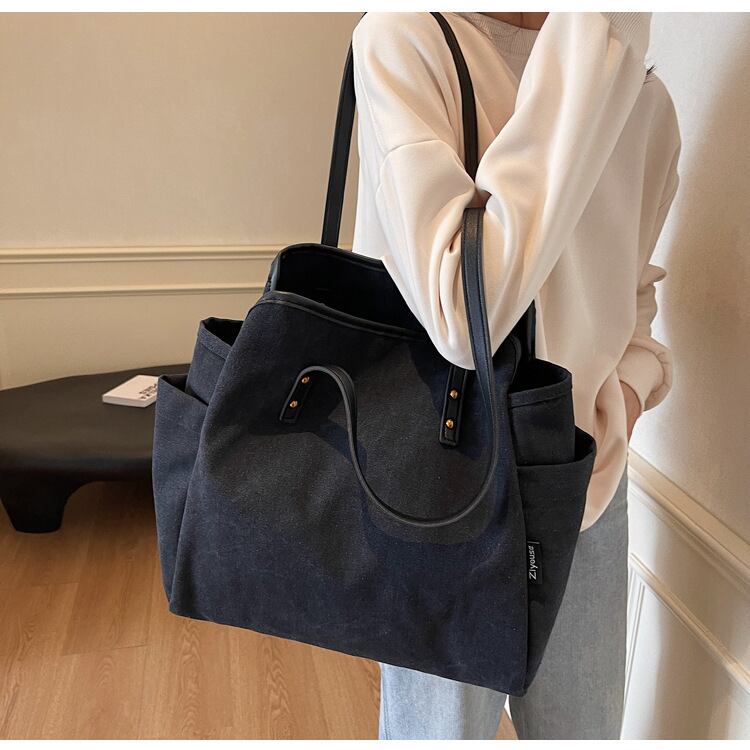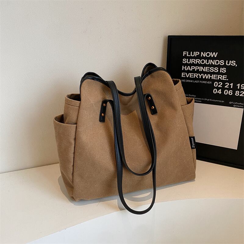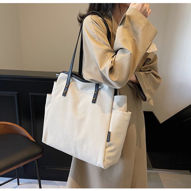 大容量キャンバストートバッグ レディース A4対応 通勤バッグ 通学バッグ 肩掛けバッグ マザーズバッグ カジュアルバッグ ブラック ブラウン グリーン ホワイト ワンサイズ K-B0272