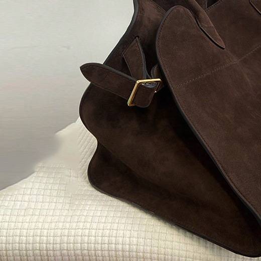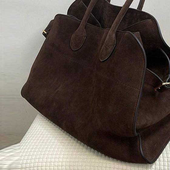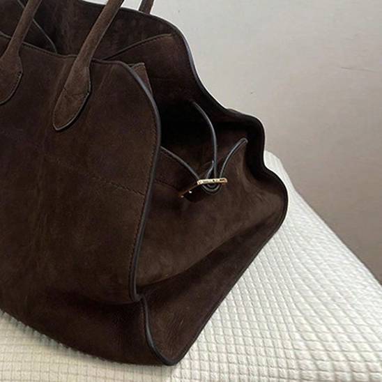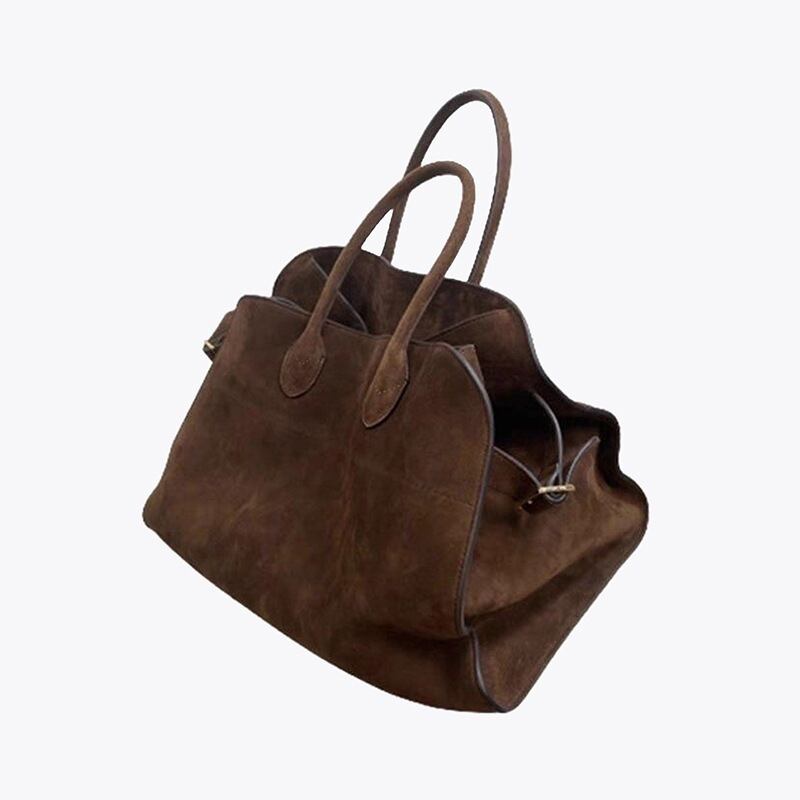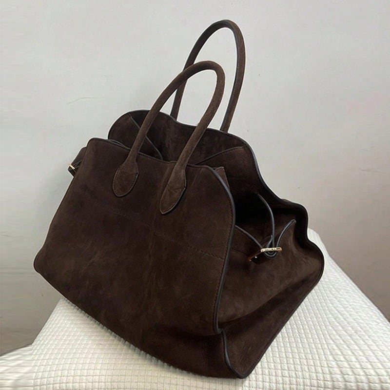 存在感のあるヴィンテージ調デザインが魅力の、大容量トートバッグ。味わい深いブラウンカラーと程よい光沢感が、大人の落ち着いた雰囲気を演出します。シンプルながら立体感のあるフォルムで、コーディネートを一気に格上げしてくれるアイテムです。