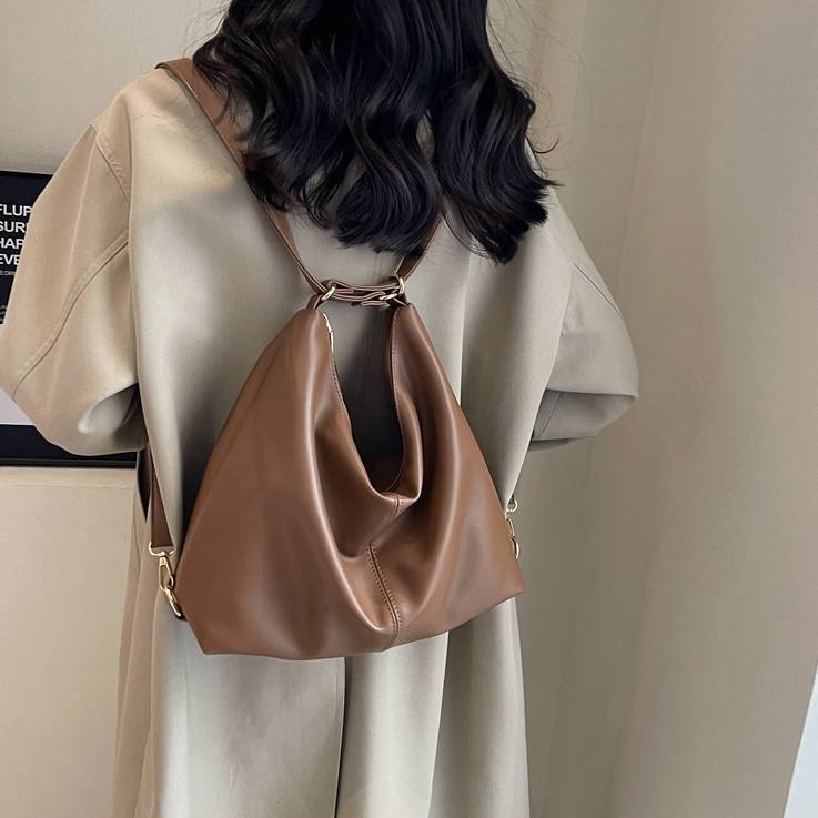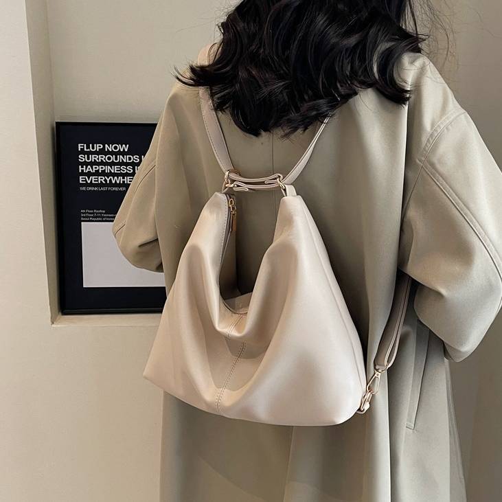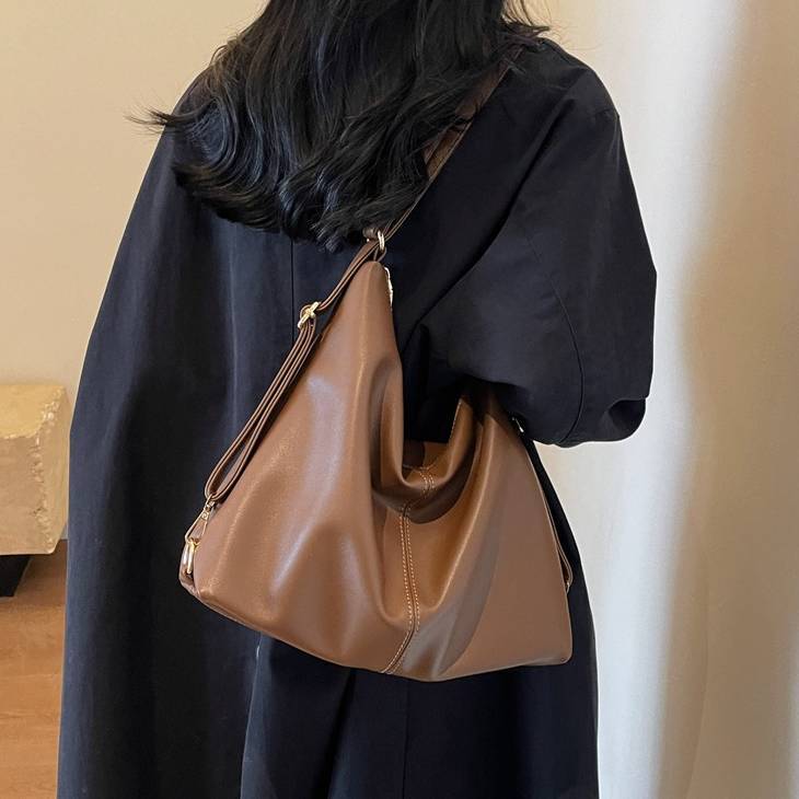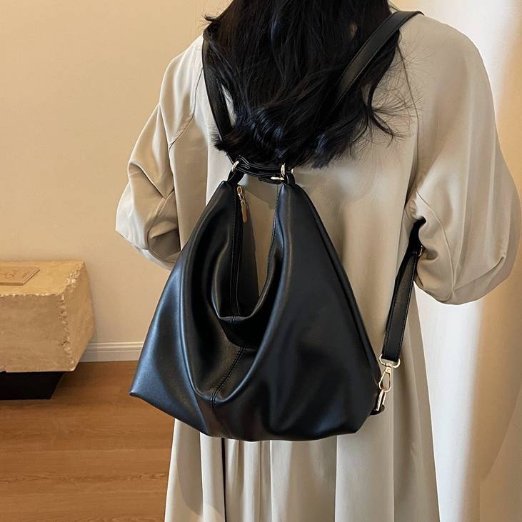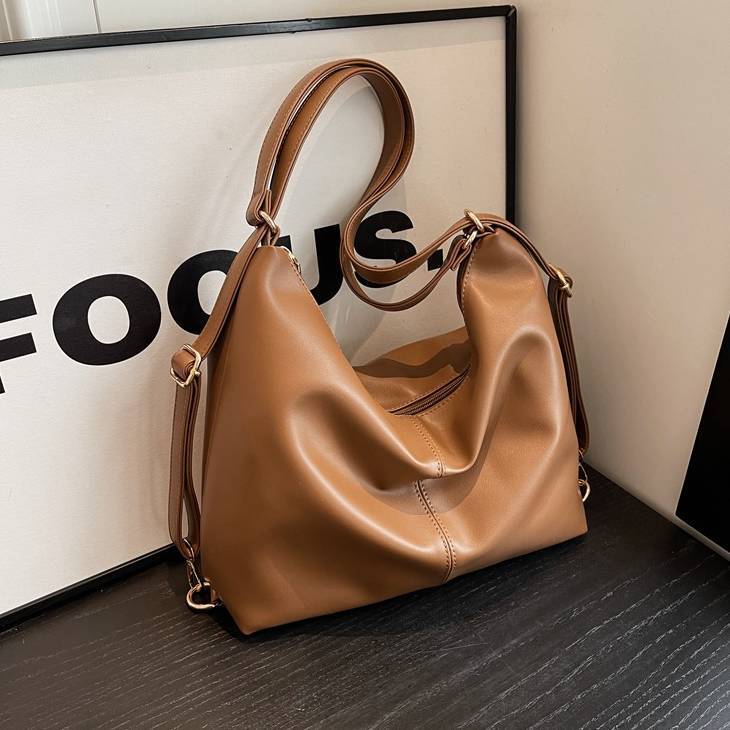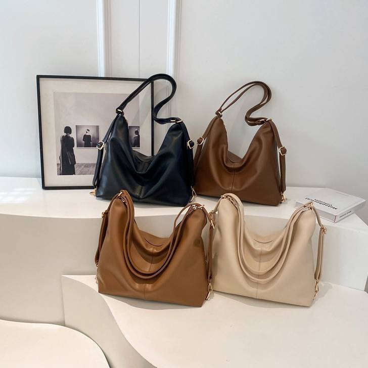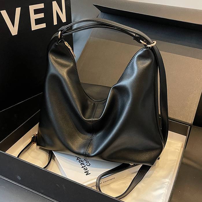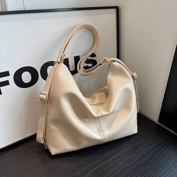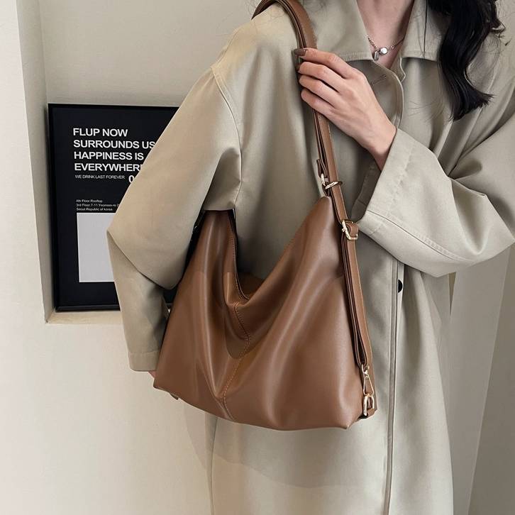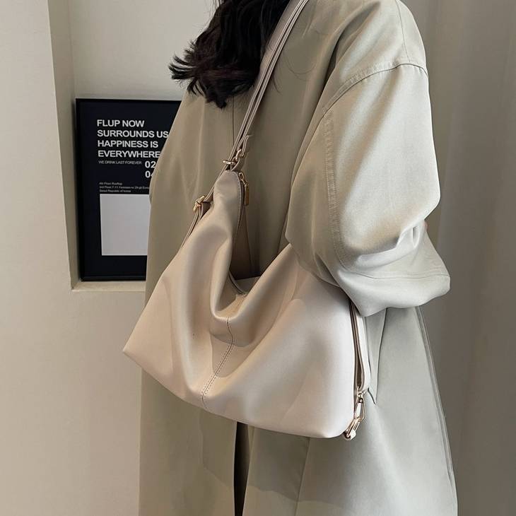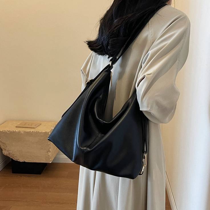 柔らかいフォルムが魅力のシンプルなワンショルダーバッグ。滑らかなPUレザー素材を使用し、上品で洗練された印象を演出してくれる大人向けのショルダーバッグです。シンプルなデザインながらも立体感のあるシルエットがコーディネートのアクセントになります。収納力もあり、スマートフォンや長財布、ポーチ、タブレットなど日常で必要なアイテムをしっかり収納可能。開口部はファスナー仕様で中身が見えにくく、防犯面でも安心して使用できます。ショルダーストラップは調整可能で、肩掛けバッグとしても斜め掛けバッグとしても使える便利な2WAY仕様です。
