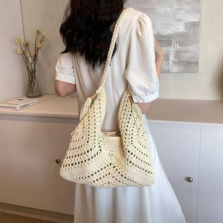 ショルダーバッグ レディース ニットバッグ かぎ編みバッグ 編み込みバッグ サマーバッグ カジュアルバッグ 韓国風バッグ トートバッグ 肩掛けバッグ 大容量バッグ おしゃれバッグ ブラウン ホワイト K-B0295