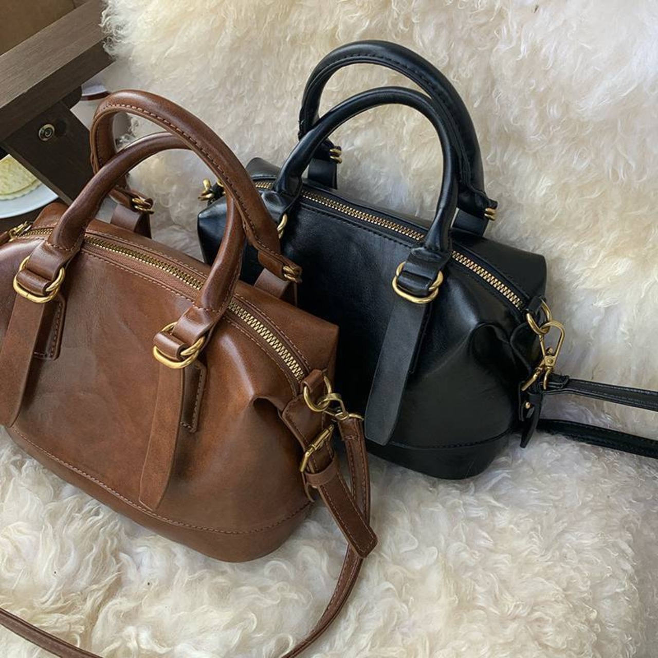 ブラックとブラウンの落ち着いたカラー展開で、季節を問わず使える万能デザイン。普段のお出かけやショッピング、デート、通勤など様々なシーンで活躍するコンパクトバッグです。