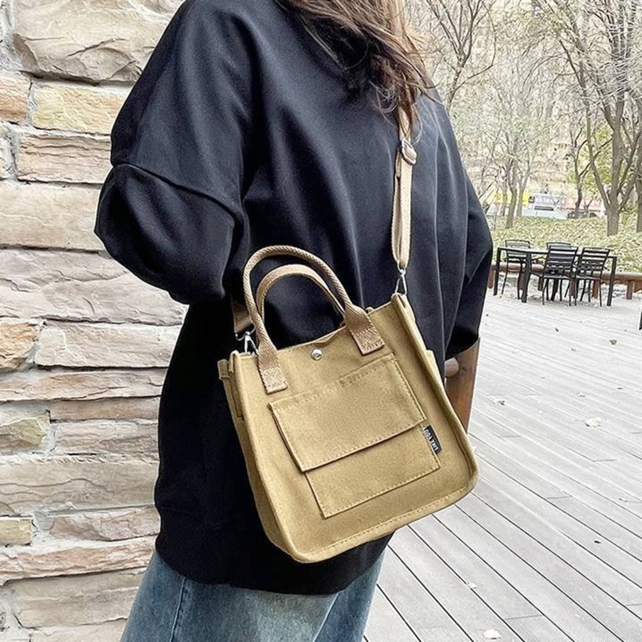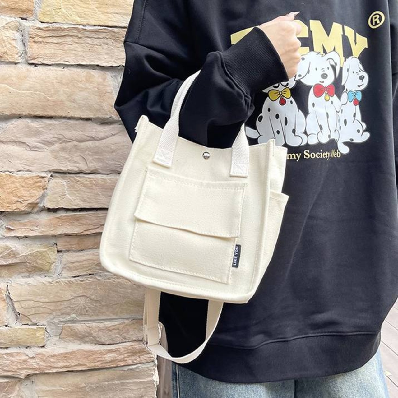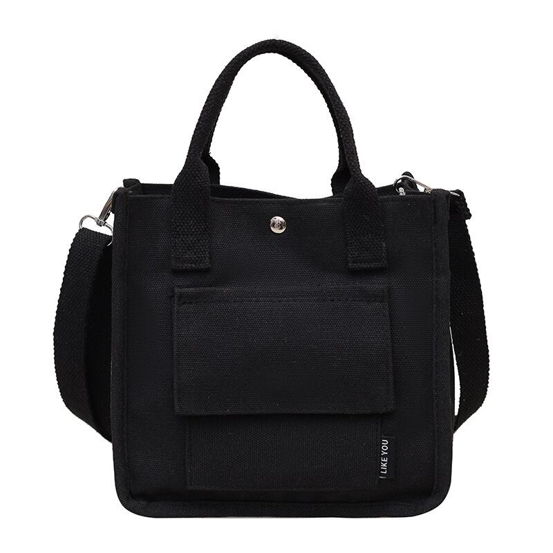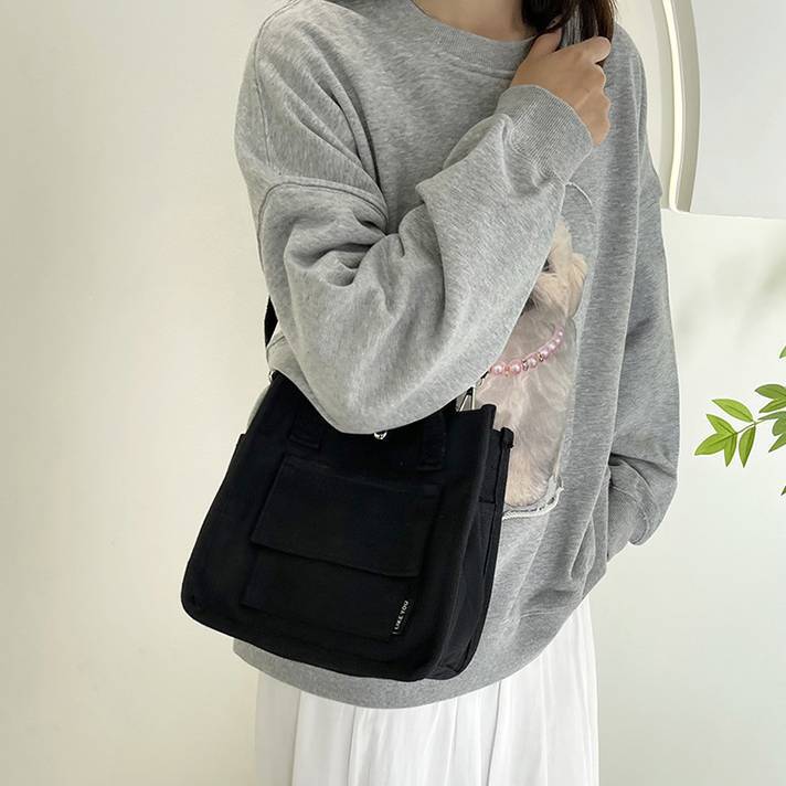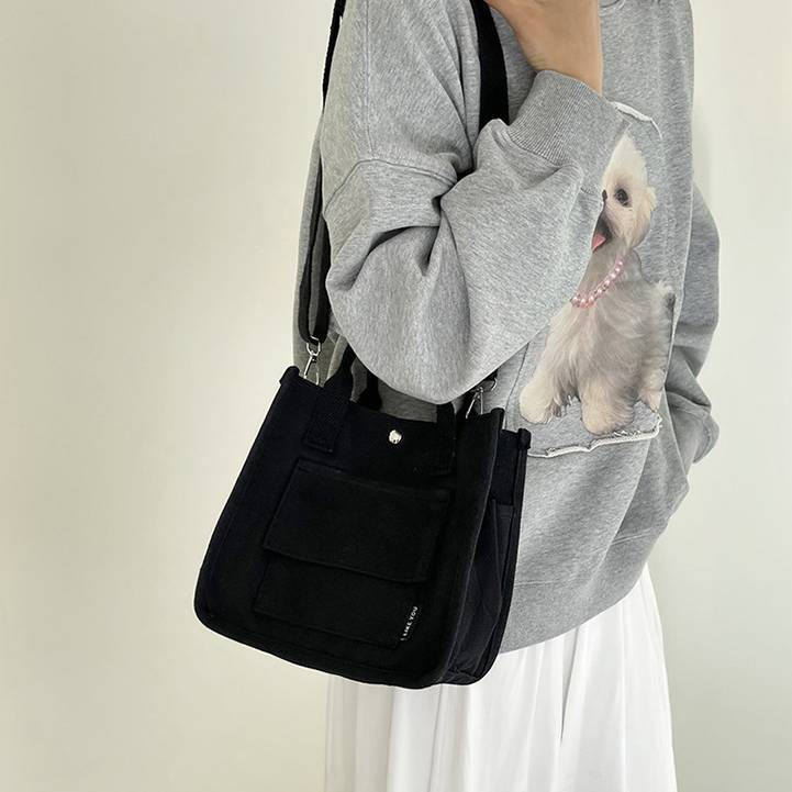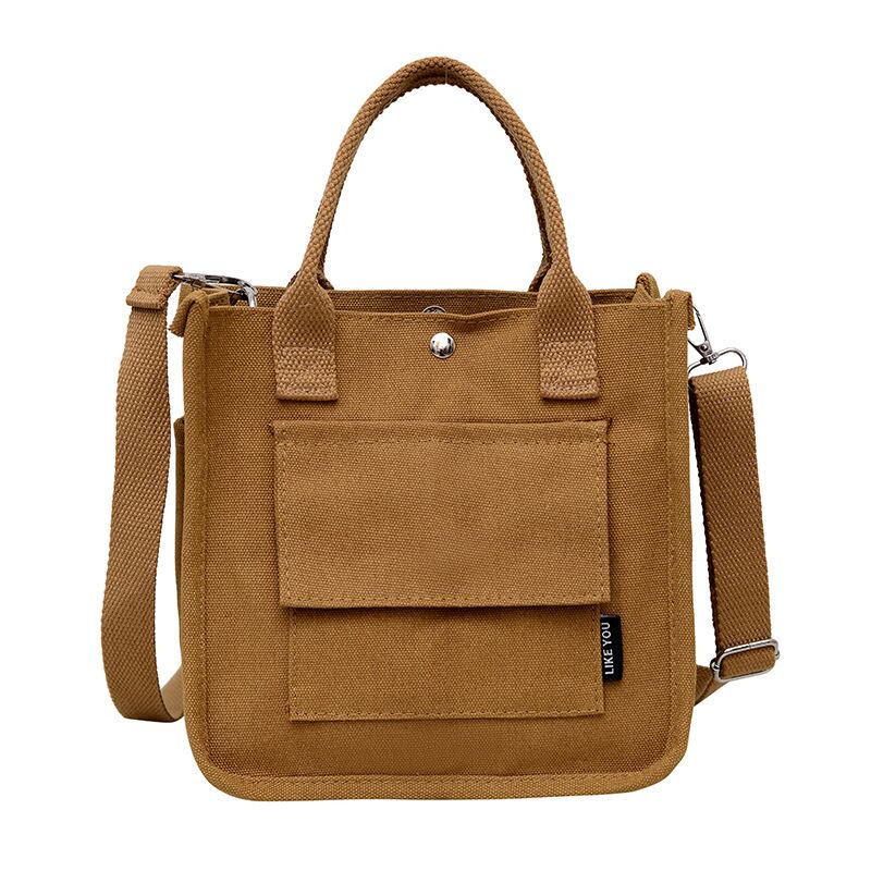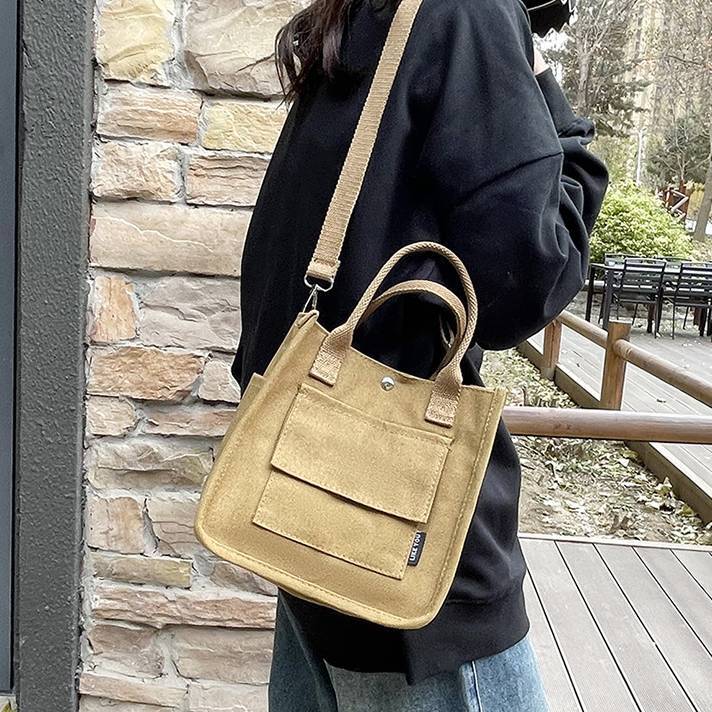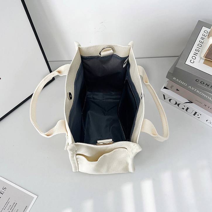 コンパクトで使いやすいキャンバス素材のミニトートバッグ。シンプルでカジュアルなデザインが魅力で、韓国風ファッションやデイリーコーデにぴったりのアイテムです。