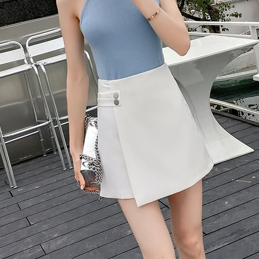 ショートパンツ 巻きスカート風 レディース ボトムス キュロットパンツ パンツ 短パン シンプル キュロット ショーパン タック入り ショート丈 ホワイト ブラック 白 黒 カジュアル きれいめ OL 春 夏 春夏 オフィスカジュアル 韓国 C-PSS0002